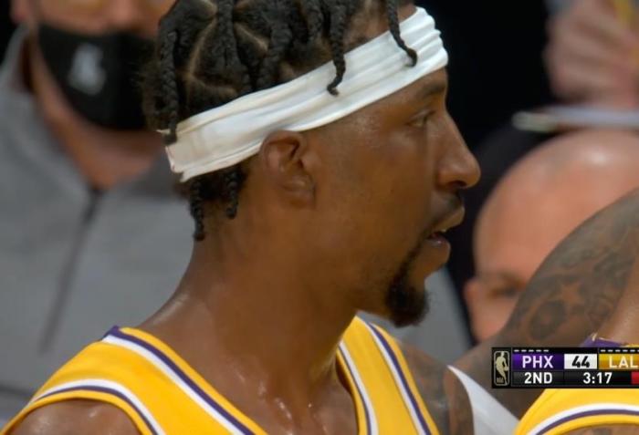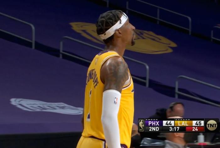 比赛进行到第二节还剩下3分钟左右,布克在防守时被湖人队球员带倒,这也让他防守的波普出现了空位。此时,波普试图跑到外线三分线接球,卡鲁索也心领神会送出传球,此时场上有争议性的一幕出现了。
