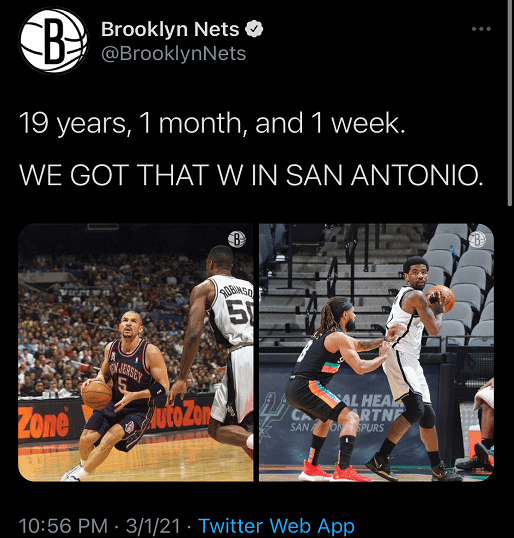 篮网19年1个月1周以来首次在马刺主场赢球。