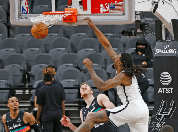 末节比赛哈登减少了传球,开始增加个人进攻,里突外投,很快就帮助篮网拉开了比分,最后时刻,篮网连续打铁,马刺则连续命中投篮,随着默里命中压哨中距离,双方战成平手,进入加时赛,加时赛欧文命中三分,哈登上篮得手,布朗命中三分,默里命中三分,欧文再中三分,布朗抛投得手,最终篮网成功赢下比赛!