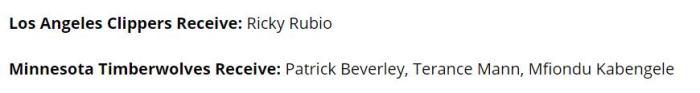 于是美国知名体育媒体《nbaanalysis》专栏记者Greg Patuto撰文分析,建议快船打包送出贝弗利、特伦斯-曼和卡本盖莱,从森林狼交易来首轮5号秀天才后卫卢比奥。