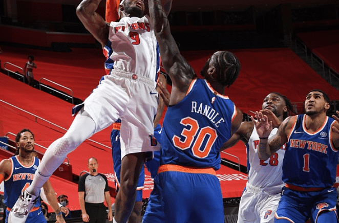 全场比赛,兰德尔再度轰下25分8板6助的全面表现,巴雷特则得到21分5板,罗斯14分4助。此外,替补登场的奎克利12分,伯克斯16分。尼克斯5大首发的在场正负值都在+10以上。而活塞方面,首发仅有格兰特和贝两人得分上双。