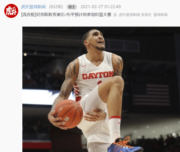奥比托平预计会参加扣篮大赛