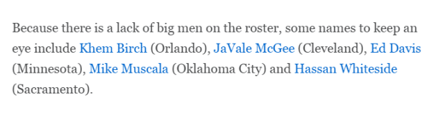 篮网的阵容依然对内线有需求,所以一些名字是潜在的目标。马克斯提到了五个内线球员:魔术的伯奇、骑士的麦基、森林狼的埃德-戴维斯、雷霆的穆斯卡拉和国王的怀特塞德。其中,怀特塞德也是湖人的心仪中锋,《洛杉矶时报》报道称,湖人正密切关注怀特塞德的动向,很有可能追求这位盖帽能力很强的中锋。