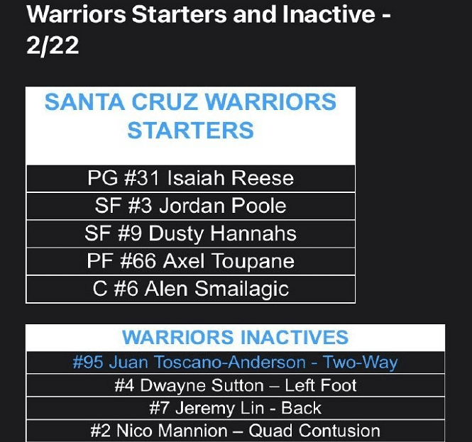 来源:直播车02-23 15:44直播车2月23日讯 今天已经取得了3连胜的圣克鲁兹勇士将会迎战温泉镇快船,这场比赛球迷们的关注点依旧是在林书豪的身上,希望可以看到他复出,但是非常可惜,林书豪再度缺阵,根据球队的伤病名单显示,林书豪仍然是背部伤势,而他也已经确认将缺席今天的比赛,这样林书豪本赛季已经缺阵了3场比赛,确实很无奈。