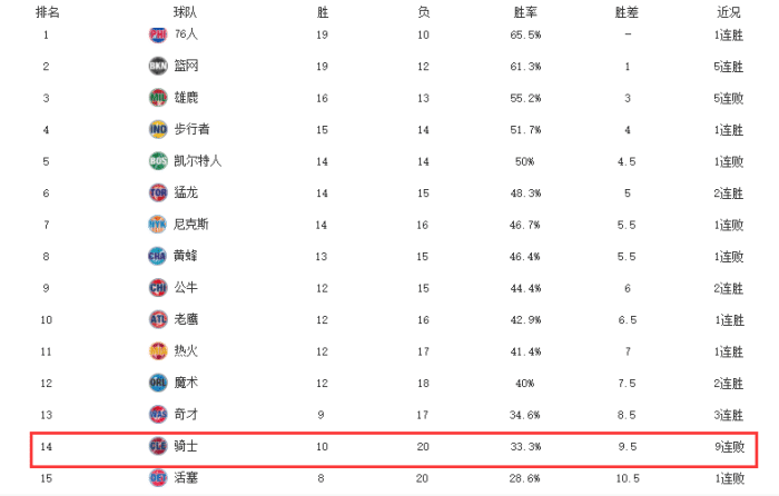 没想到的是自从塞克斯顿说完这番豪言壮语之后,骑士吃到了9连败。这一波9连败也直接让他们跌落神坛,从被外界看好的东部黑马,到如今的一败涂地,西部倒数第二名,这样的表现确实是有着天壤之别。