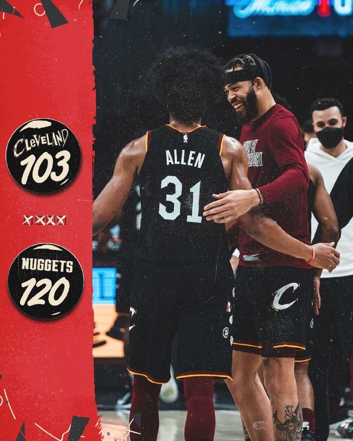 骑士(10-20):塞克斯顿23分4助攻,阿伦20分10篮板4助攻,加兰德14分5助攻3抢断,奥科罗14分3篮板2助攻,奥斯曼11分6篮板7助攻,麦基8分5篮板2助攻2抢断,温德勒4分4篮板2助攻,多特森7分1篮板4助攻