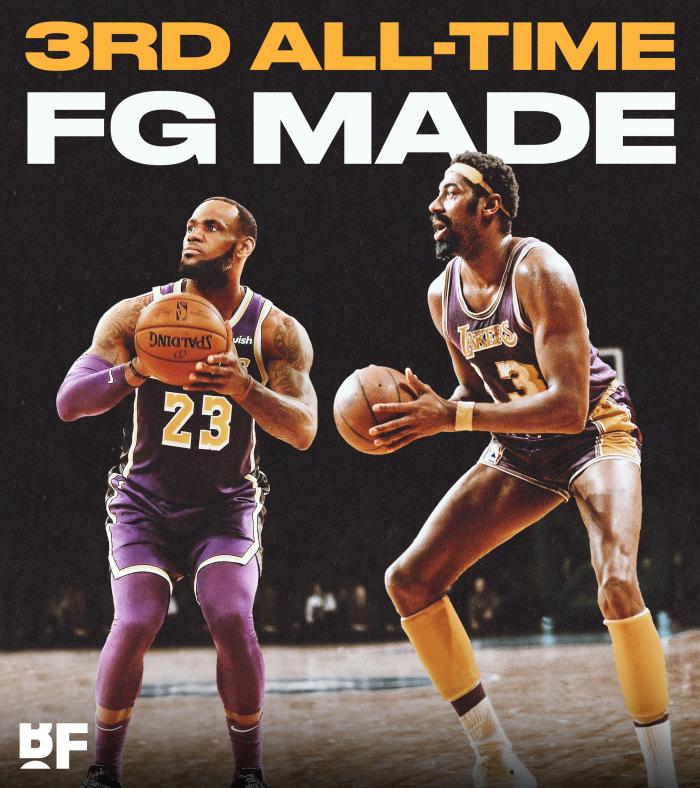 詹姆斯本场早早打进三个运动战进球,从而正式超越张伯伦升到历史进球榜第三名,前面仅剩卡尔-马龙和贾巴尔两位大神;超越名宿之后,詹姆斯得分、篮板和助攻都已达到标准,超越自己又破一大历史纪录,开季连续23场至少15分5篮板5助攻历史第一,超越11-12赛季自己创造的连续22场纪录,詹姆斯破纪录太上瘾,连自己都不放过!