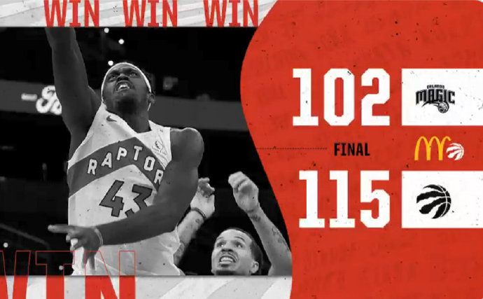 猛龙115-102拆穿魔术 西亚卡姆30+10 武切维奇15+14