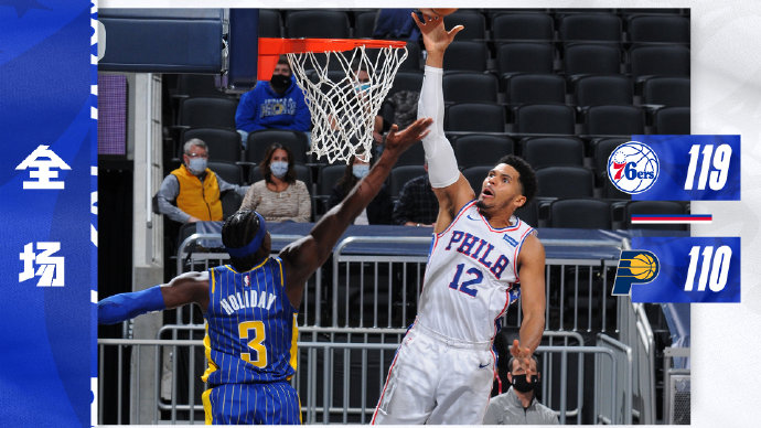76人119-110逆转步行者 哈里斯27+8 西蒙斯21+7