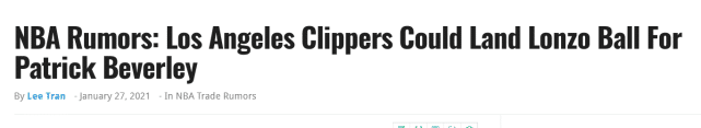 来源:直播车01-28 20:53直播车1月28日讯 洛杉矶快船是2021年总冠军的有力竞争者,但要想给湖人带来更大的威胁,他们还得通过交易补强,特别是在控卫的位置上。北京时间1月28日,美媒Fadeaway World建议快船和鹈鹕交易,用贝弗利换来球哥,达成各取所需的效果。