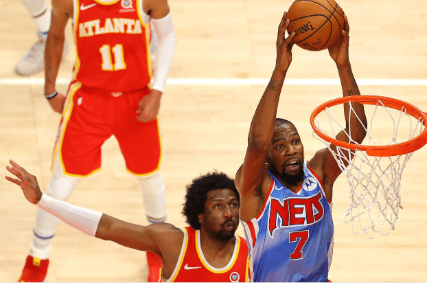 哈登第三节又开始减少进攻,主要扮演控卫组织进攻,杜兰特多次吃饼轻松得分(单节13分),不过篮网一直和老鹰打得难分难解;末节哈登贡献9分,关键时刻上篮以及造特雷杨犯规,不过哈登错失绝杀,篮网和老鹰打进加时赛。