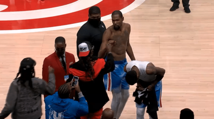 哈登31+15不装了!赛后杜兰特欧文送球衣,KD赤膊离场身材抢镜