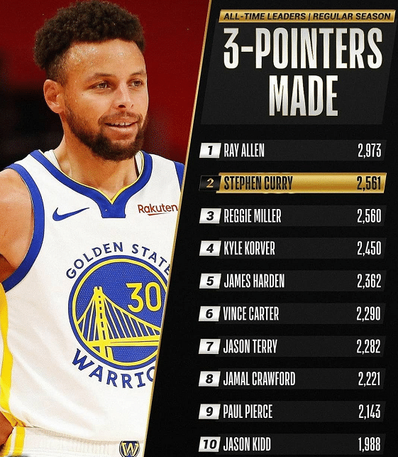 库里三分总数升至历史第二!被超越的米勒送祝福:雷阿伦在等着你