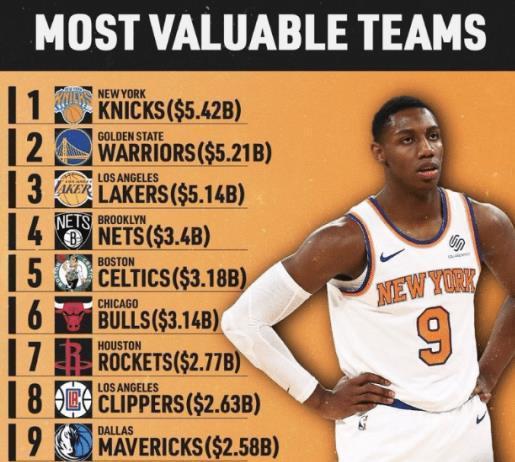 3000万,在1997年绝对不是一个小数字,可是相比这支球队给多兰带来的收益简直不值一提。在知名网站SPORTICO提供的NBA球队2021年市值排行榜上,尼克斯队以54.2亿美元成为NBA历史上市值最高的球员。
