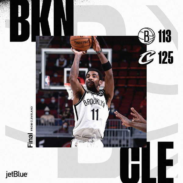 末节,篮网表现的十分顽强,欧文继续上分,艰难扛着的球队的进攻大旗,不知不觉间,他的个人得分已来到30+。无奈,在防守端,篮网漏洞太多,骑士继续内外结合,始终保持住10分以上的优势。本节后段,篮网提前换下全部首发,投子认负。全场打完,篮网113-125又一次败给骑士,遭遇2连败。