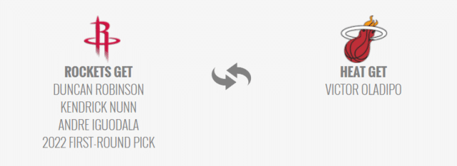 方案2:火箭送出奥拉迪波,得到邓肯-罗宾逊、纳恩、伊戈达拉和2022年首轮签