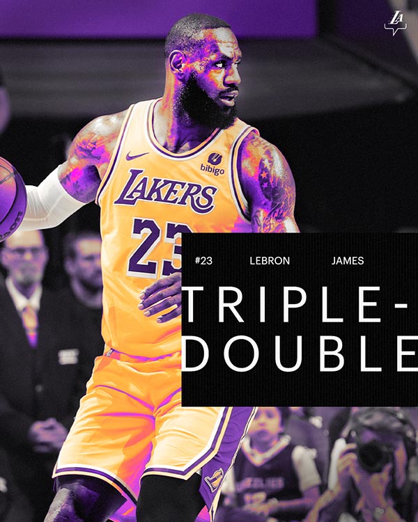 下半场,第三节詹姆斯专注于防守和组织进攻,单节3投1中拿到3分5助攻4篮板,在詹姆斯的带领下,湖人一度领先到27分,不过詹姆斯休息期间,湖人又断电被灰熊15-0疯狂追分,三节打完湖人领先仅剩10分。