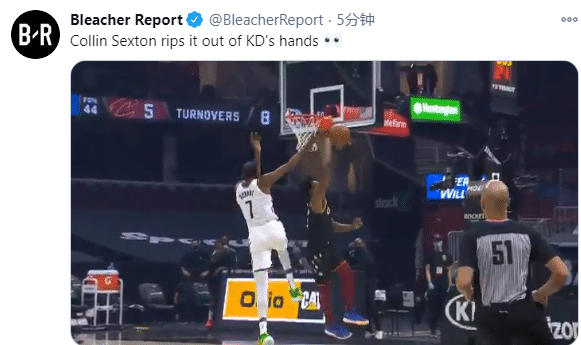 美媒《露天看台》晒出这一次防守画面,写道:塞克斯顿从杜兰特手里把球抢走;Sports Center发推写道塞克斯顿挡住了杜兰特。