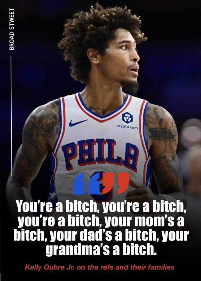 在76人和快船比赛的最后时刻,小卡连续打成两个关键2+1,终场前5.1秒送出制胜大帽,随后双方跳球,76人获得球权,乌布雷持球杀到禁区,和乔治发生身体接触后摔倒,小卡送出大帽;裁判没有任何吹罚,对此76人主帅纳斯暴怒冲着裁判怒吼,乌布雷更是点名狂骂裁判:你是碧池,你妈是碧池,你爸是碧池,你奶是碧池。