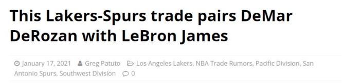 于是美国媒体《nbaanalysis》专栏记者Greg Patuto撰文分析,建议湖人打包送出施罗德和哈雷尔,从马刺换来德罗赞。