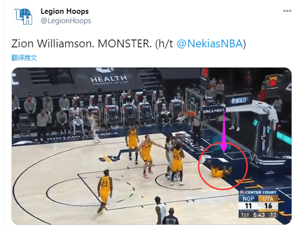 美媒《Legion Hoops》发推盛赞锡安-威廉森是野兽。