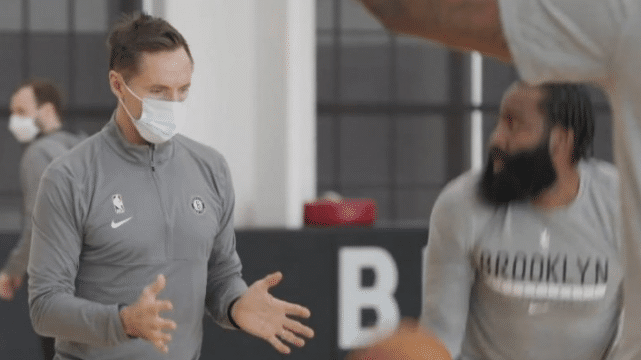 篮网三巨头合体训练!欧文全力以赴,纳什做示范,哈登KD认真