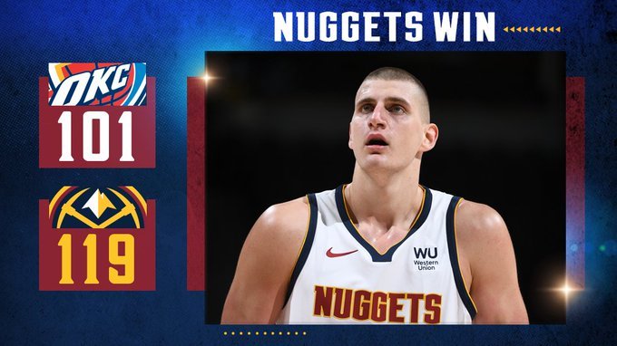 掘金119-101击败雷霆 约基奇27+12+6 掘金7人上双