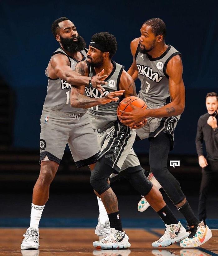 杜兰特和哈登在篮网首次联手就打出超级统治力,末节合砍27分太疯狂;那么篮网三巨头有多恐怖呢?