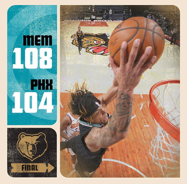 灰熊:莫兰特17分10助2断、克拉克17分5板3助2断、蒂尔曼12分6板、安德森10分8板、阿伦16分6板3助、贝恩10分、泰厄斯-琼斯11分5板3助