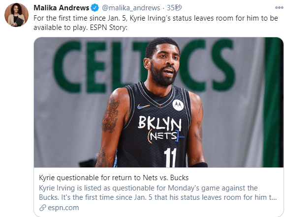 欧文出战状态大变!离队12天连缺6场终归队,篮网三巨头或首秀大战雄鹿
