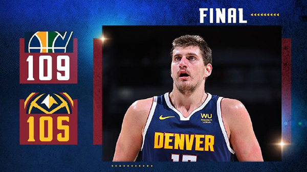 爵士109-105险胜掘金 克拉克森23分 约基奇35+14+8