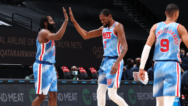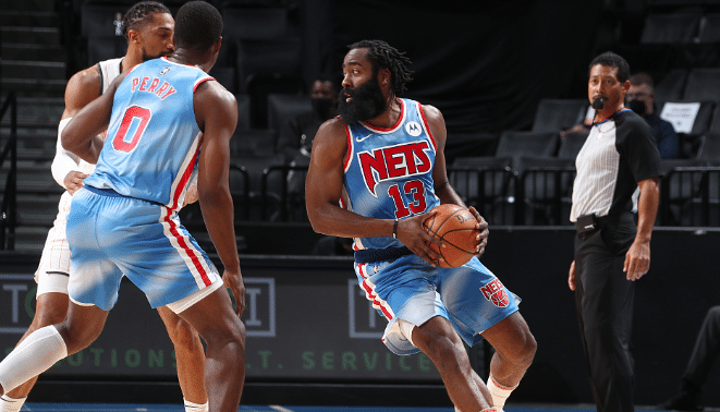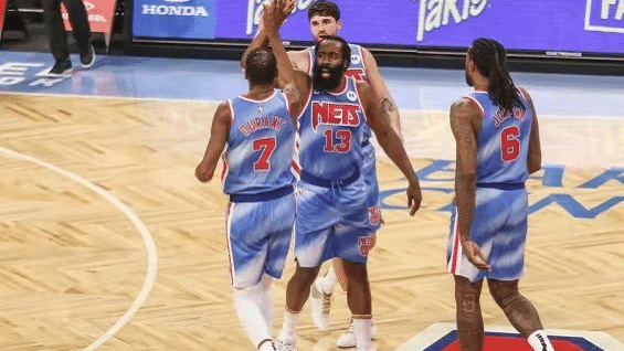 哈登单场轰下14次助攻也是篮网队史新纪录;