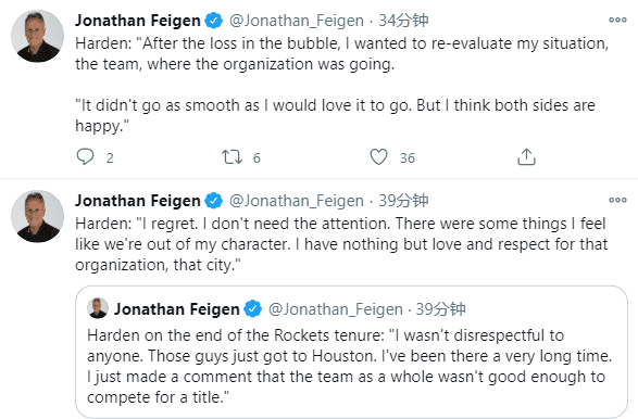 哈登解释了离队原因,自从在奥兰多复赛被淘汰之后,他重新评估了球队的实力,他觉得火箭没有机会夺冠,所以哈登选择离开,赢得总冠军也是他对篮网产生兴趣的最大原因。