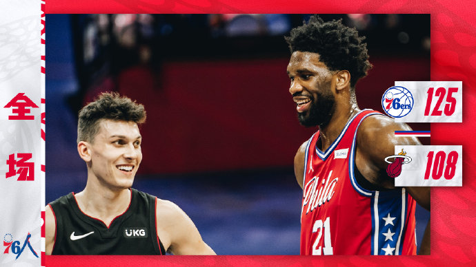 76人125-108击败热火 米尔顿31+7 西蒙斯三双