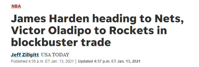 四方大交易达成!哈登加盟篮网组三巨头,火箭获奥拉迪波+4个首轮