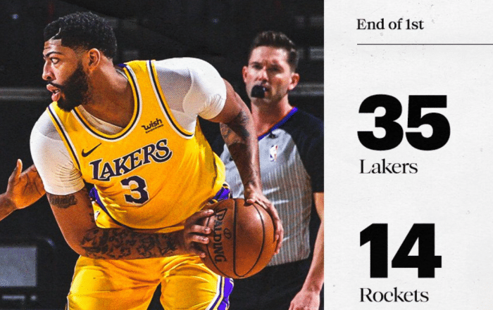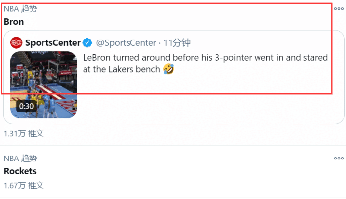 冲上热搜!詹姆斯三分提前转身庆祝!湖人半场领先火箭23分