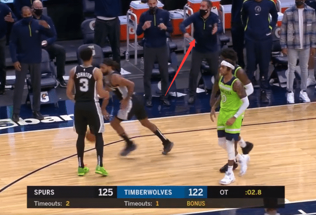爱德华兹面对防守一个加速便完成突破,不过面对空篮,爱德华兹似乎想到了此时球队落后3分。于是他放弃了到手的2分,将球往外传。结果阿尔德里奇准确判断,完成抢断。森林狼球员瞬间有些蒙圈,在还剩4秒的情况下,全队都定在原地。主帅桑德斯在场边手舞足蹈要队员们犯规,可惜时间已经没了。其实爱德华兹完全可以先将球放进,因为当时还有7秒左右,森林狼还有暂停。