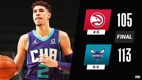 来源:直播车01-10 12:40 直播车讯:北京时间1月10日,2020-21赛季NBA常规赛继续进行,黄蜂队在主场迎战老鹰队。最终,黄蜂队以113-105战胜老鹰队。