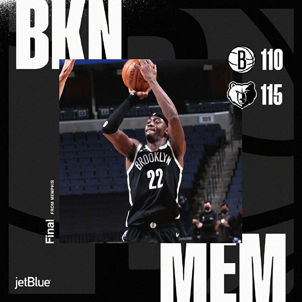 灰熊115-110险胜篮网 布鲁克斯24分 勒韦尔43分