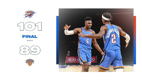 来源:直播车01-09 11:37 直播车讯:北京市家2021年1月9日消息,俄克拉荷马城雷霆队客场101-89击败纽约尼克斯队,尼克斯3连胜就此被终结。