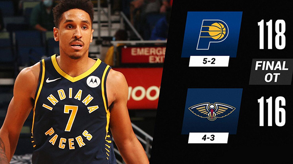 来源:直播车01-05 12:16 直播车讯:北京时间1月5日消息,NBA常规赛继续进行,鹈鹕坐镇主场迎战来访的步行者,双方鏖战加时,最终布罗戈登准绝杀,步行者加时118-116险胜鹈鹕。