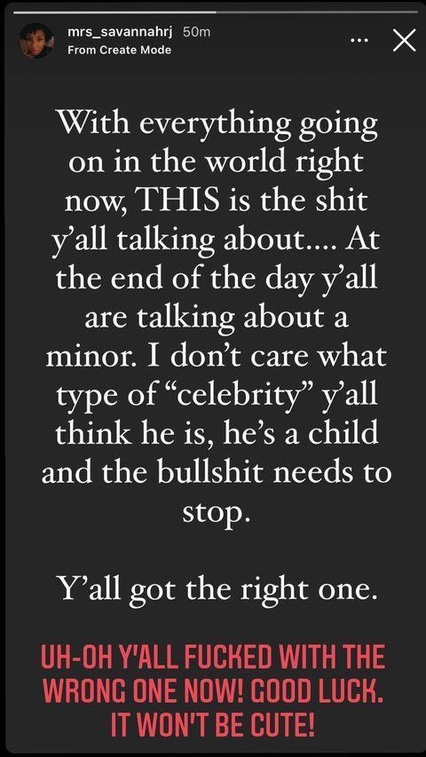面对着舆论,詹姆斯的妻子莎瓦娜非常的生气,她在社交媒体上怒斥道:看看现在发生了什么?看看你们在讨论的XX东西,布朗尼只是个孩子,他不是名人,他只是个孩子在,请停止胡说八道,你们应该找对目标。