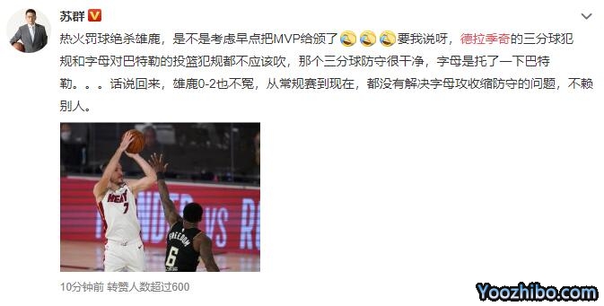 苏群:热火罚球绝杀雄鹿,是不是考虑早点把MVP给颁了要我说呀,德拉季奇的三分球犯规和字母对巴特勒的投篮犯规都不应该吹,那个三分球防守很干净,字母是托了一下巴特勒。。。话说回来,雄鹿0-2也不冤,从常规赛到现在,都没有解决字母攻收缩防守的问题,不赖别人。