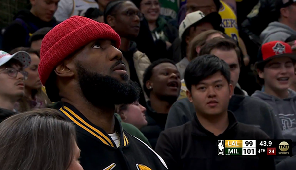 暂停回来,湖人突然哑火,利拉德助攻比斯利上篮以及助攻米德尔顿命中三分,拉塞尔两罚全中,浓眉防住字母哥,但丁威迪错失三分,浓眉关键三分续命,里夫斯超远三分也有,43.9秒普林斯两罚扳平比分,拉塞尔关键一投被帽,而且球碰拉塞尔出界,雄鹿挑战成功,詹姆斯与裁判交流,字母空接不进,浓眉篮板,最后0.8秒,里夫斯错失三分,两队打进加时。
