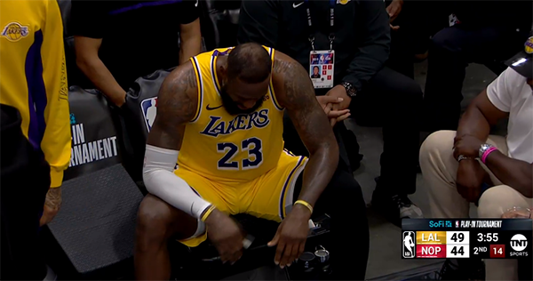 来源:直播车04-17 12:04直播车讯 北京时间4月17日,NBA附加赛湖人客场大战鹈鹕,39岁的詹姆斯太拼了,被锡安撞飞重摔倒地,磕到手肘仍拒绝下场。
