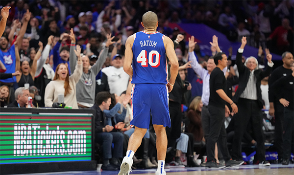 这场比赛除了恩比德之外,老将巴图姆表现极其出色,防守端死盯巴特勒,进攻端手感滚烫,轰下个人赛季最高的20分。比赛关键时刻,他大帽希罗的三分出手,成为比赛的重要转折点。此役巴图姆的三分球是10中6,顶级的表现。
