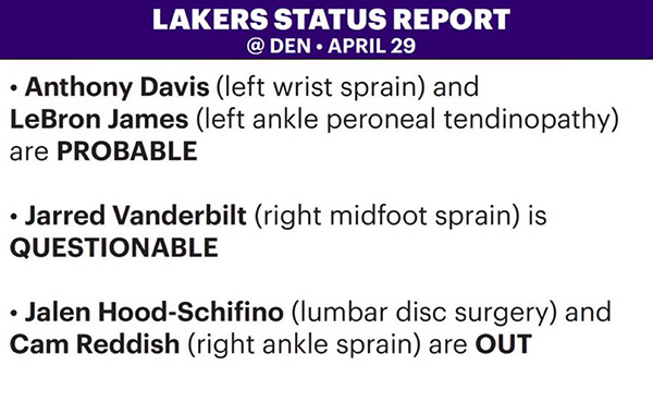 湖人掘金G5伤情速递:詹眉大概率出战,悍将复出在望,穆雷或伤停