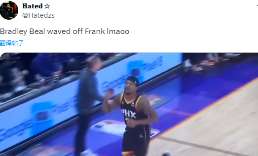 第三节5分52秒,比尔吃到个人第4次犯规,沃格尔赶紧换下比尔,比尔在跑回替补席期间甩手,拒绝与沃格尔击掌,太阳将帅不和一幕引热议,美媒表示比尔不喜欢他的教练,球迷调侃比尔挥手向沃格尔告别。