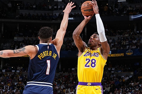 次节,拉塞尔上篮得分,詹姆斯中投命中,波特、雷吉又连中三分。拉塞尔也在外线还以颜色,詹姆斯打成2+1,浓眉连得6分,湖人打出一波12-0,已经领先掘金7分。