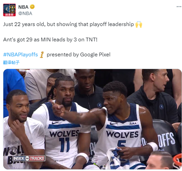来源:直播车05-05 14:00直播车讯 北京时间5月5日,西部半决赛森林狼G1客场击败掘金,总比分1-0领先,爱德华兹狂砍43分7篮板以及末节12分带队掀翻卫冕冠军,但别忘了夸赞森林狼超级第六人纳兹-里德,替补上半场23分钟,11投7中拿到16分4篮板3助攻,末节独砍14分打爆掘金替补席。